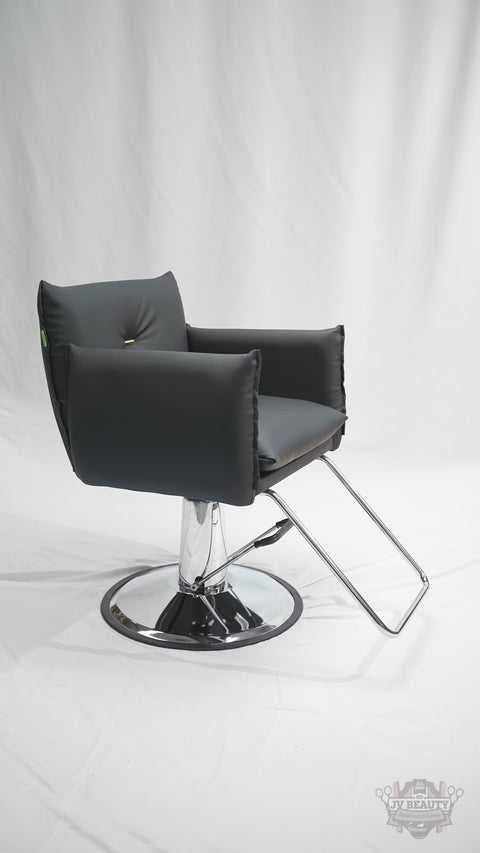 The Plush Styling Chair has thick padding upholstered on the arms and back. For the hairdresser, the lumbar angle in the back encourages proper client posture.JV Plush Styling Chair combines comfort and style for a luxury salon experience.